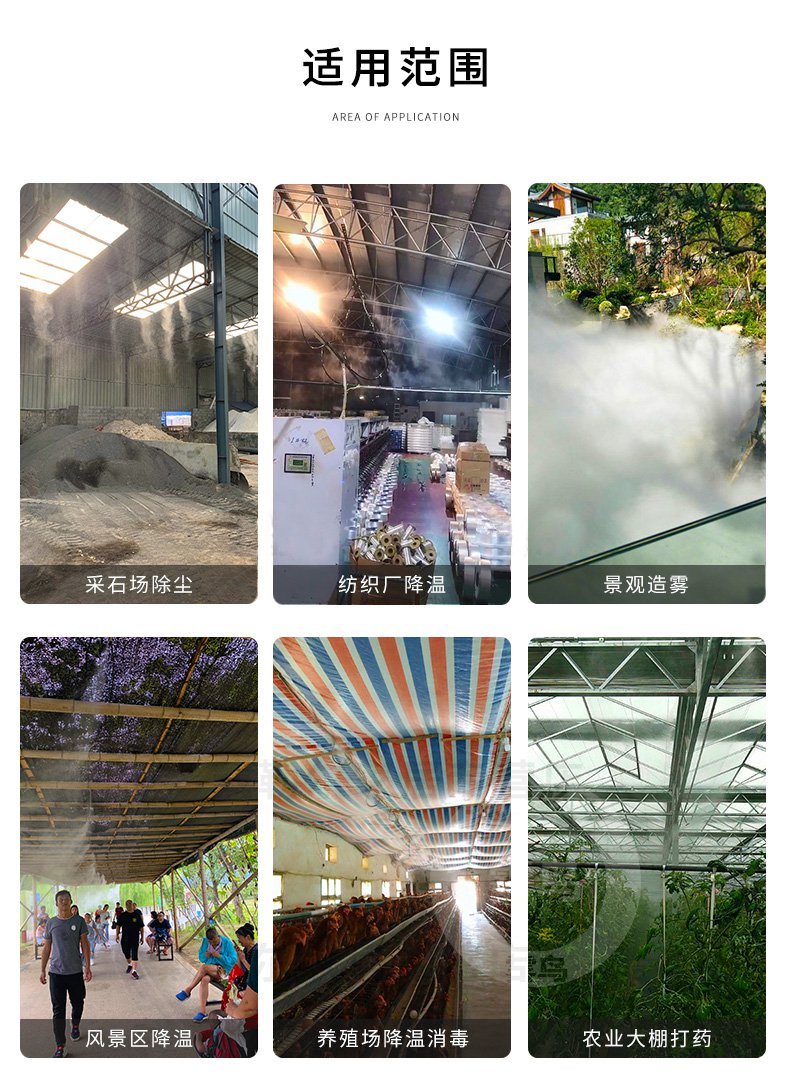 該噴嘴內(nèi)置防滴器,具有停機(jī)后不產(chǎn)生滴水現(xiàn)象,常規(guī)布局車間頂部布局霧化噴霧使用。防滴漏噴嘴噴霧細(xì)小,霧滴顆粒直徑5-15微米,就有噴射遠(yuǎn),不易堵塞優(yōu)點(diǎn)。
