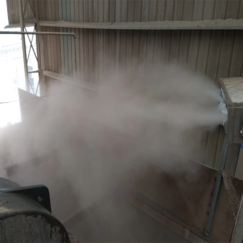 實(shí)驗(yàn)表明當(dāng)水霧顆粒與粉塵顆粒大小相等時(shí),水霧粒與粉生顆粒大容易聚結(jié)成團(tuán),在重力的作用下形成沉降,大終落到地面。當(dāng)水滴的大小與粉塵大小類似時(shí),粉塵會(huì)直接與水滴發(fā)生碰撞,從而相結(jié)合。當(dāng)有大量的細(xì)小的水滴形成霧團(tuán)完全覆蓋住起塵點(diǎn)的時(shí)候,就會(huì)達(dá)到非常良好的抑塵效果,不會(huì)形成粉塵的二次污染。